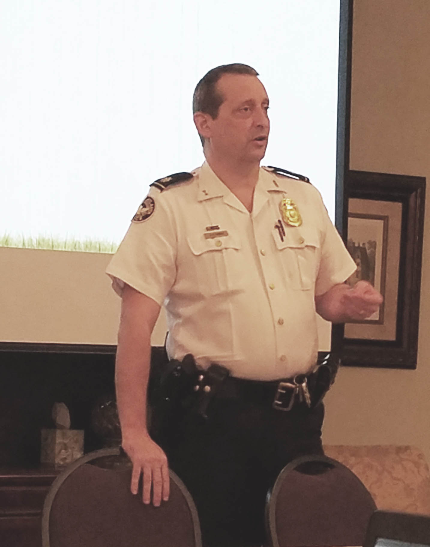 Another attendee asked Hobbs about cheap ($24) tag covers available online which make it difficult for tag readers to decipher tag numbers. Won’t criminals simply use covers to escape being tracked? Hobbs says their traffic guys will pull cars over if they can’t read the tag number. He said the university tag frames that obscure even the county name are a violation. If there is something wrong with the visibility of a tag, that’s a clue that something might not be right.